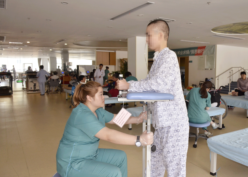 患者罗先生于2017年10月20日左右感冒后出现发烧 高热 达40度伴头痛 呕吐,当地治疗不佳转至东阳市人民医院行腰穿“病毒性脑炎”与抗感治疗伴有发烧,转至浙二。今为进一步康复治疗收入我院。患者入院时精神不佳,生活不能自理,完全依赖,双下肢无任何运动功能。不能翻身完全卧在床上,只有手和头有活动。现在生活部分自理,部分依赖,可以从床上坐起,自己可以完成床到轮椅之间的转移,可以穿拖衣服和鞋子,可以借用四足杖行走。