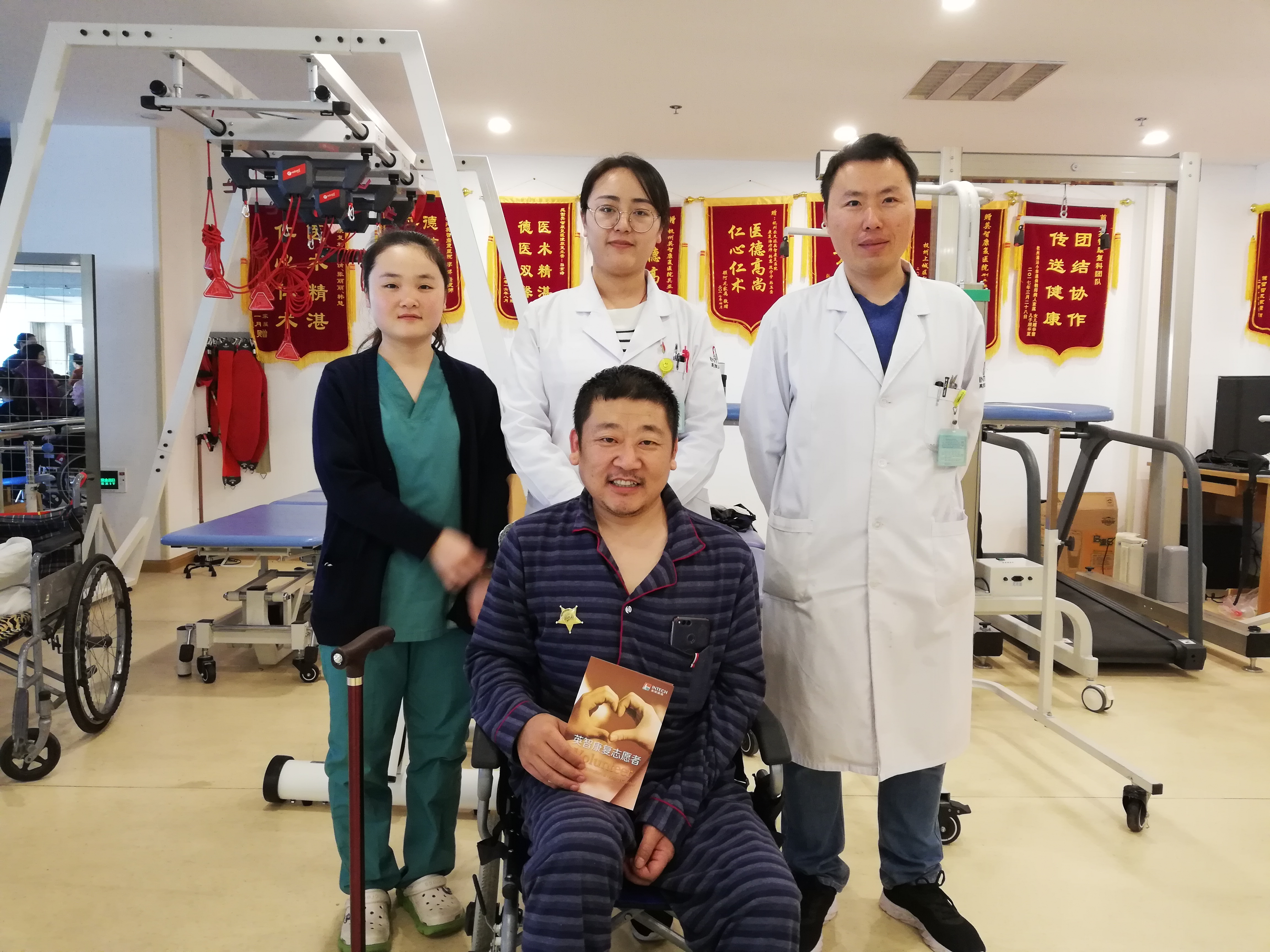 入院后,由杭州英智康复医院的康复医师团队共同会诊为管先生进行完善的检查和评估后,制定了相应康复治疗方案。在接受了近一个月的OT、PT等一系列康复治疗后,左侧肢体也可以活动了,意识清晰并可以站立,整个人状态看着轻松了许多......这一变化让管先生的家人看在眼里,感激在心里。