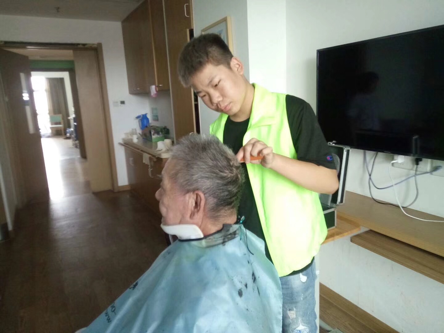 康复医院的很多患者,他们大多数都伴有瘫痪等行动不便的症状,需要长时间住院,许多患者头发长了实在没办法也就是家人拿剪刀随便剪一剪,各种奇形怪状的头发都有。现在好了,有专业的美发师来帮他们剪头发,再也不用担心各种奇怪的发型影响患者的心情了。